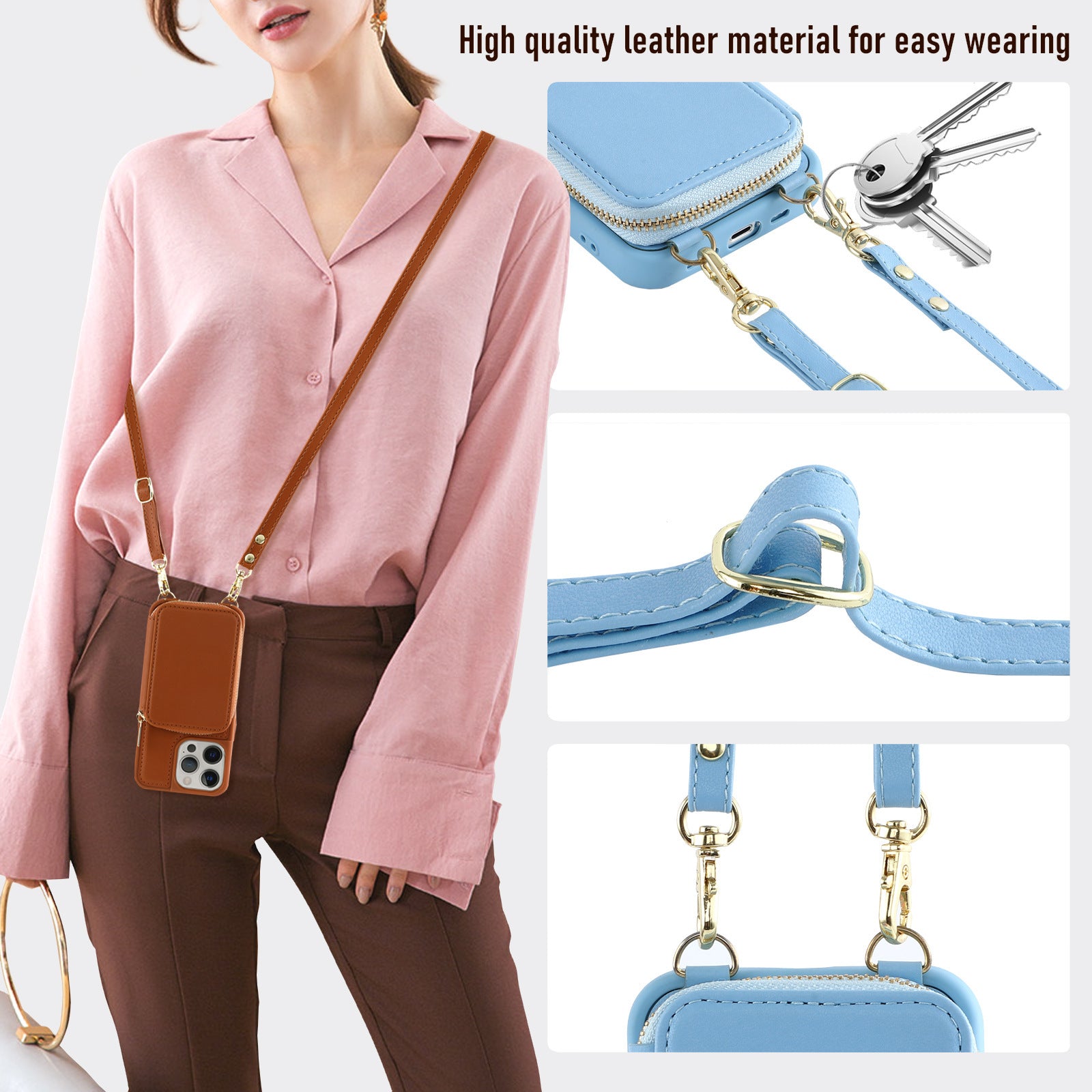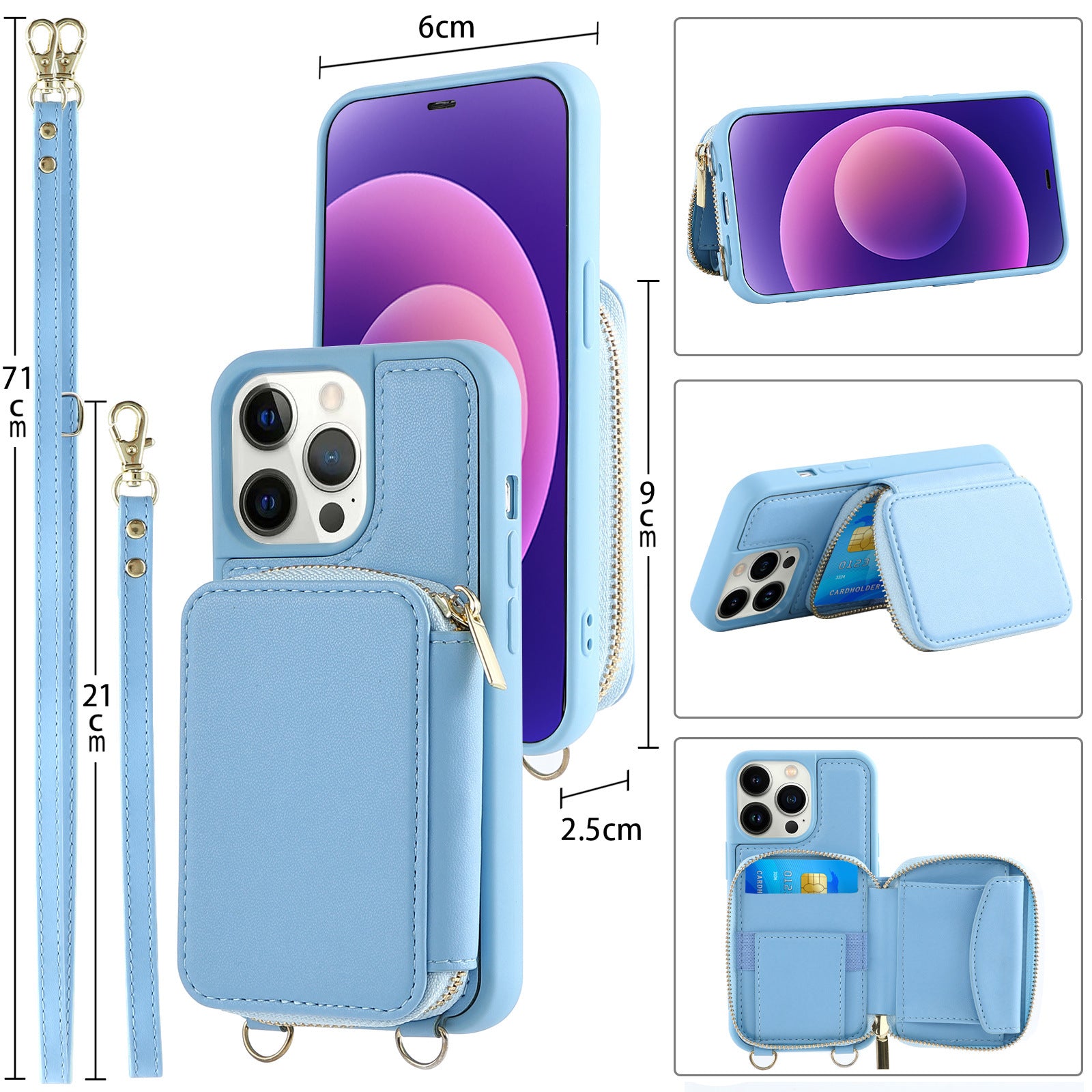 IPhone14pro Phone Case Crossbody Zipper Multifunctional Card Holder Wallet Type Applicable Protective Leather Case